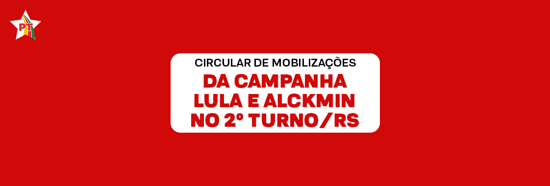 Nosso calendário de mobilização, nesta reta final, inicia no dia 19 de outubro às 15 horas com a Grande Caminhada da Vitória com Lula e Alckmin em Porto Alegre. Convocamos toda nossa militância para estarem conosco.