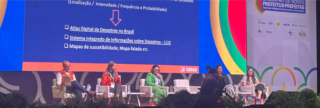 Juliana Moretti, coordenadora-geral de Gerenciamento de Riscos do Centro Nacional de Gerenciamento de Riscos e Desastres (Cenad), representou a Secretaria Nacional de Proteção e Defesa Civil e destacou o papel do Governo Federal no suporte às cidades atingidas por eventos extremos. Ela reforçou a necessidade de fortalecer os órgãos municipais de defesa civil e manter um diálogo próximo com os gestores locais.