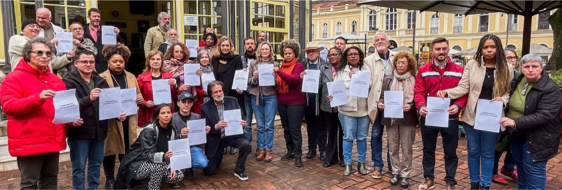 Hoje, 03 de junho, foi lançada a carta “Compromisso com Porto Alegre”, escrita em conjunto pelo PT, PCdoB, PV, PSOL e Rede. O evento contou com a presença das pré-candidatas Maria do Rosário e Tamyres Filgueira. A carta destaca a necessidade de união, trabalho e reconstrução para enfrentar a crise resultante do negacionismo das mudanças climáticas e do desmonte da gestão pública. A proposta é por uma gestão pública eficiente e transparente, focada em políticas sociais, ambientais e econômicas, visando prevenir futuras tragédias e recuperar a cidade para todos. O evento também contou com a presença da presidenta do PT-RS, Juçara Dutra Vieira, bem como de outras lideranças políticas.