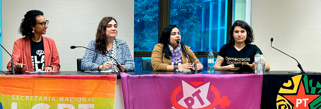 A mesa de abertura, coordenada pela companheira Suelen Gonçalves, teve a seguinte composição: Mari Perusso, Sofia Cavedon, Juçara Dutra Vieira, Ana Affonso, Reginete Bispo e Maria do Rosário.