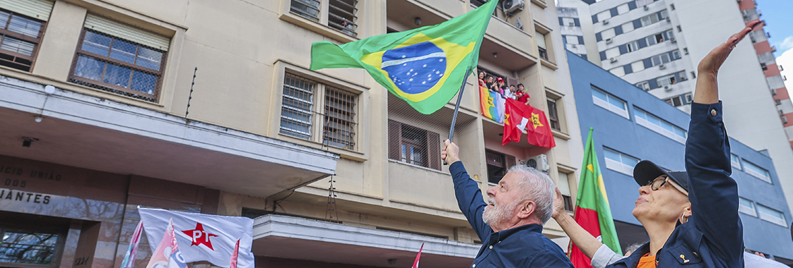 O candidato líder nas pesquisas a presidência, Luiz Inácio Lula da Silva (PT), cumpriu agendas de campanha na última quarta-feira (19) em Porto Alegre (RS). Junto com seu candidato a vice, Geraldo Alckmin (PSB), lideranças petistas e deputados eleitos, o ex-presidente concedeu entrevista coletiva a meios de comunicação locais, e em seguida, participou de uma caminhada com apoiadores no centro da capital gaúcha que conferiu ao petista 49,8% dos votos no 1º turno.