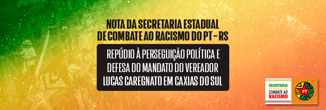 A Secretaria de Combate ao Racismo do Partido dos Trabalhadores do RS, vem a público se solidarizar e ao mesmo tempo manifestar seu total repúdio a abertura de comissão processante, sem justa causa por parte dos vereadores bolsonaristas que compõem a Câmara de Vereadores do município de Caxias do Sul. Querem cassar o Mandato do Vereador Lucas Caregnato e com isso calar sua voz e o seu trabalho firme de oposição em defesa daqueles que mais precisam.
