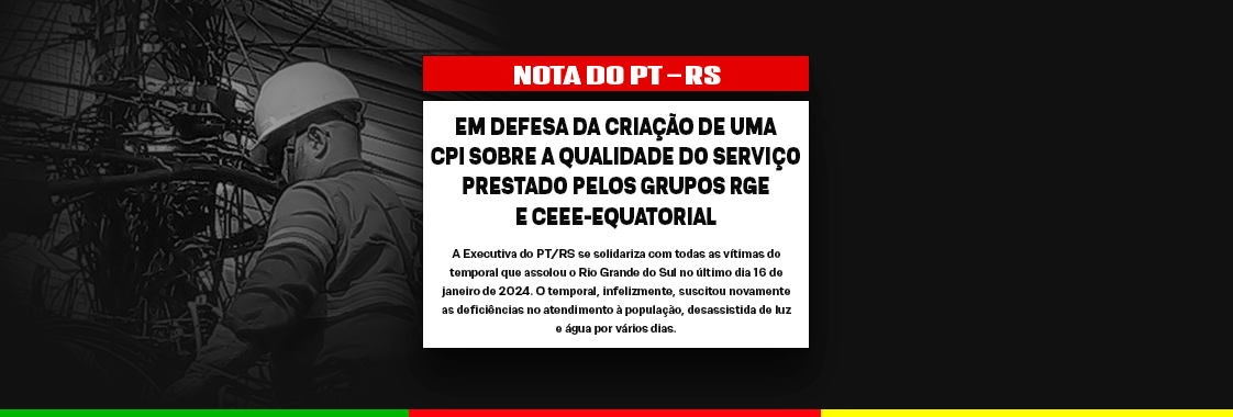 A Executiva do PT/RS se solidariza com todas as vítimas do temporal que assolou o Rio Grande do Sul no último dia 16 de janeiro de 2024. O temporal, infelizmente, suscitou novamente as deficiências no atendimento à população, desassistida de luz e água por vários dias. A situação também foi reveladora das consequências de um modelo precário de regulação de serviços essenciais, como luz e água, bem como colocou em tela a inoperância do poder executivo em contexto de pós privatização. Em razão do exposto, a Comissão Executiva do PT/RS saúda a iniciativa do Deputado Miguel Rossetto e do conjunto da bancada do PT/RS, pela criação de uma Comissão Parlamentar de Inquérito (CPI) no âmbito da Assembleia Legislativa do Rio Grande do Sul. Reforçamos também, o convite para que as organizações sindicais e populares somem esforços em favor da pressão para que as deputadas e deputados estaduais da ALERGS assinem o requerimento para instalação da Comissão na 1ª semana após o fim do recesso parlamentar.